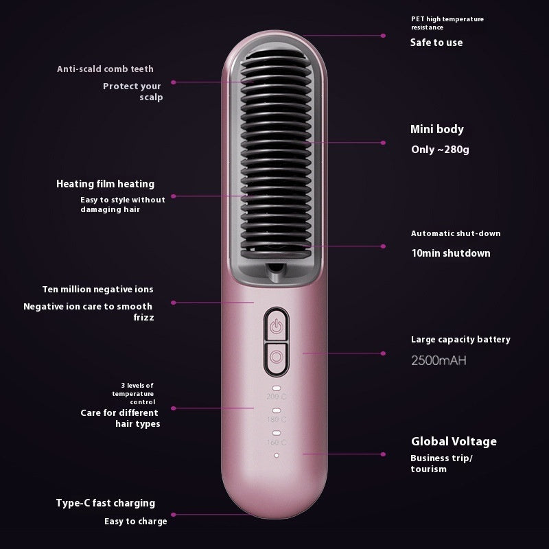 Wireless Straight Comb Portable 60 Million Anion Hair Care Electric Comb